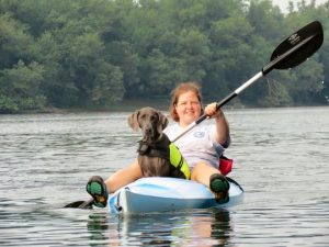 Stephanie Myers and her 9-year-old Weimaraner Bentley will demonstrate one of their favorite water sports they enjoy doing together – Stand Up Paddleboarding!